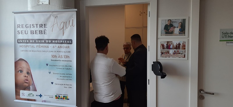 No ato, o gerente de Administração do Hospital Fêmina, Cláudio Silva, ressaltou a iniciativa do presidente Lula e do Governo Federal de instalar as equipes dos ministérios no Rio Grande do Sul e destacou que o Cartório de Registro Civil foi realocado no novo espaço junto à maternidade no 6º andar, visando proporcionar mais humanização e acessibilidade às mães e aos bebês.