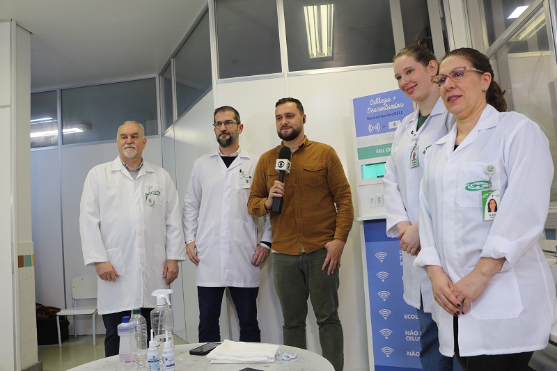 O Grupo Hospitalar Conceição (GHC) deu um passo importante em direção à inovação em biossegurança para garantir que a atuação dos profissionais e o atendimento aos usuários do SUS seja seguro e eficiente. Nesta terça-feira (16/7), no Hospital Criança Conceição (HCC), foi implantado o projeto EsterilizaCell, resultado da parceria entre a instituição e a Hüttech, empresa com sede na Tecnopuc. O totem, que também está instalado na UPA Moacyr Scliar, tem por objetivo fazer a descontaminação de celulares através de Nanoondas (UV-C), com aprovação ISO 45001 e 17025. O médico Fernando Anschau, assessor da Diretoria de Inovação, Gestão do Trabalho e Educação do Grupo (DIGTE), salienta a importância desta tecnologia na redução de infecções hospitalares, ocasionadas pela presença milhares de bactérias nos aparelhos.