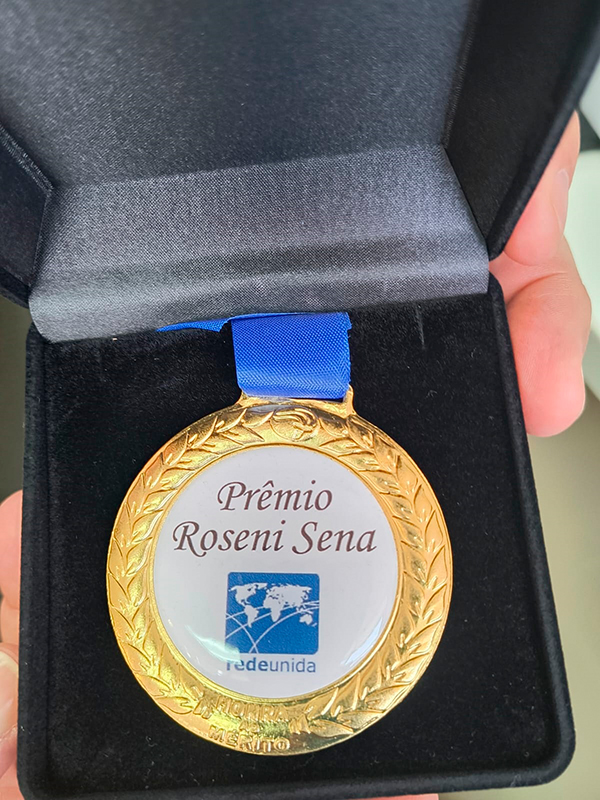 O diretor-presidente do Grupo Hospitalar Conceição (GHC), Gilberto Barichello, recebeu nesta quinta-feira, 15 de agosto, a medalha do Prêmio Roseni Sena, concedida pela Rede Unida. A distinção foi instituída em fevereiro de 2024, durante encontro realizado na Itália. Roseni Sena foi fundadora da Rede Unida e teve uma importância fundamental na formação de profissões da Saúde, em especial, da Enfermagem. Barichello foi incluído na categoria Contribuições ao Fortalecimento da Democracia e dos Sistemas Universais de Saúde e recebeu a medalha das mãos do coordenador-geral da Rede Unida, Alcindo Ferla. Até agora, receberam a honraria o presidente Luiz Inácio Lula da Silva, a ministra Nísia Trindade, o ministro Alexandre Padilha, o senador Rogério Carvalho, o deputado federal Jorge Solla e a representante da OPAS no Brasil, Socorro Gross.