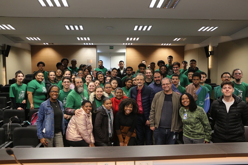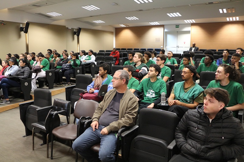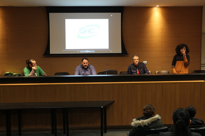 Estiveram presentes o diretor Administrativo e Financeiro do GHC, João Motta, a diretora de Inovação, Gestão do Trabalho e Educação, Quelen Tanize Alves da Silva, o gerente de Participação Social e Diversidade, Eduardo Russomano, e o coordenador pedagógico da Escola Mesquita, Wagner Moura.