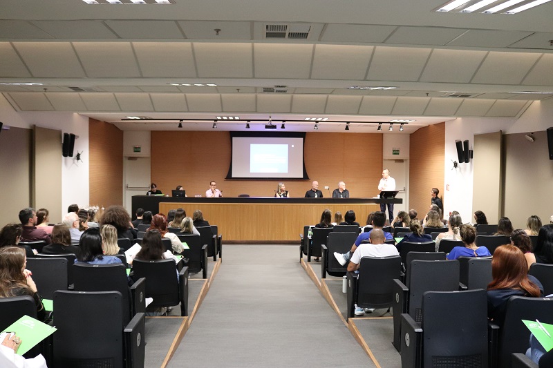 Além do diretor de Atenção à Saúde, a mesa de abertura do evento foi composta pelo coordenador de Ensino e Pesquisa da Escola GHC, Rodrigo Azevêdo, o coordenador médico do Centro de Oncologia e Hematologia do GHC, Marcelo Capra, a coordenadora do Programa de Oncologia e Hematologia da Residência Multiprofissional em Saúde do GHC, KatianeTremarin Morche, e o representante da Gerência de Internação do Hospital Conceição Gabriel Messerschmidt.