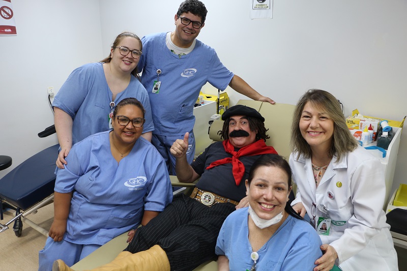Nesta segunda-feira, 25 de novembro, em alusão ao Dia Nacional do Doador de Sangue, o humorista Jair Kobe, com seu personagem Guri de Uruguaiana, visitou o Banco de Sangue do Hospital Nossa Senhora da Conceição (HNSC). Guri doou sangue, tirou foto com a equipe do setor e com os doadores, além disso gravou vídeos para as redes sociais, incentivando o público a doar sangue e participar da campanha.
