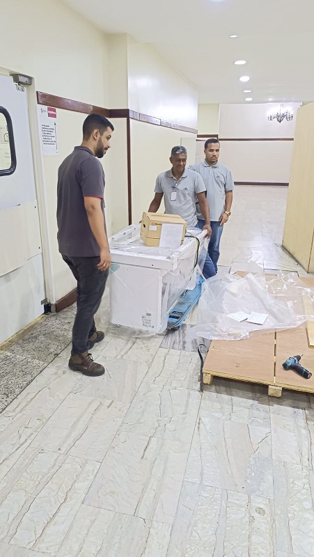 O HFB/GHC começou, no dia 18 de dezembro, a instalação de um novo equipamento de raio-X no Centro de Diagnóstico por Imagem (CDI), localizado no prédio 1. O aparelho, que estava armazenado em caixas desde junho de 2021, será montado em uma sala completamente reformada e planejada pelas equipes de engenharia do Rio de Janeiro e de Porto Alegre.
