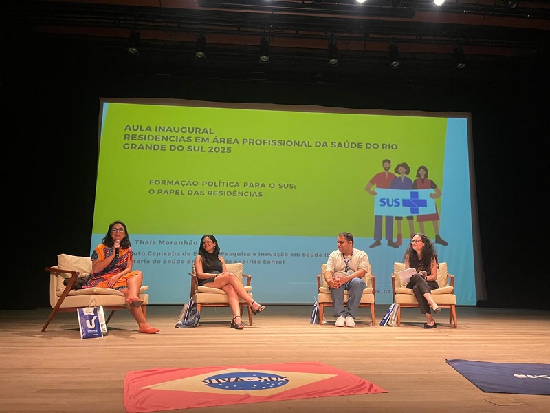 A aula contou com uma mesa de debates formada pela doutora Thais Maranhão de Sá e Carvalho, que atua na Coordenação-Geral dos Programas de Residência em saúde do Instituto Capixaba de Ensino, Pesquisa e Inovação em Saúde, da Secretaria Estadual de Saúde do Estado do Espírito Santo, pela doutora Daniela Dallegrave, que é docente da Escola de Enfermagem e de Saúde Coletiva da Universidade Federal do Rio Grande do Sul), e por Antoni Silva Koboldt, graduando do Curso de Enfermagem da Universidade Federal do Rio Grande do Sul, onde é presidente do Diretório Acadêmico. A mesa foi mediada pela coordenadora do Programa de Vigilância em Saúde da Escola de Saúde Pública do Rio Grande do Sul e Secretária da Codemu/RS, Paula Lopes Gomide. Foram discutidos temas pertinentes à importância da formação política dos profissionais de saúde para o fortalecimento e defesa do SUS, avaliando estratégias para tanto no âmbito das residências.
