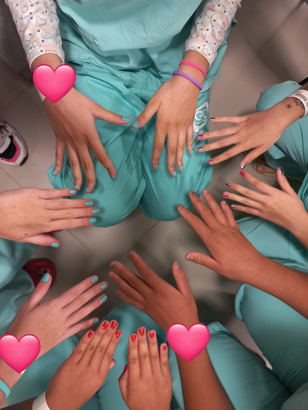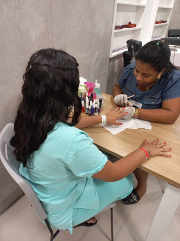 Todas as terças, no espaço de convivência do Centro de Oncologia e Hematologia do GHC, jovens entre 12 e 17 anos participam de momentos de cuidado pessoal, com esmaltação de unhas, maquiagem e lindos penteados promovidos por um grupo de mulheres voluntárias. Lá, encontram-se com a manicure Andriele e a cabeleireira Silvana para momentos de carinho e renovação da autoestima, fortalecendo a autoestima e incentivando o autocuidado.