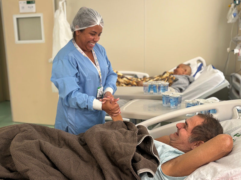 “Esse é o setor do meu coração. Os pacientes são gratos, como se fossem da nossa família. Toda a equipe é muito integrada, e a gente torna o ambiente mais leve, com amor e cuidado. Isso é gratificante para nós.”