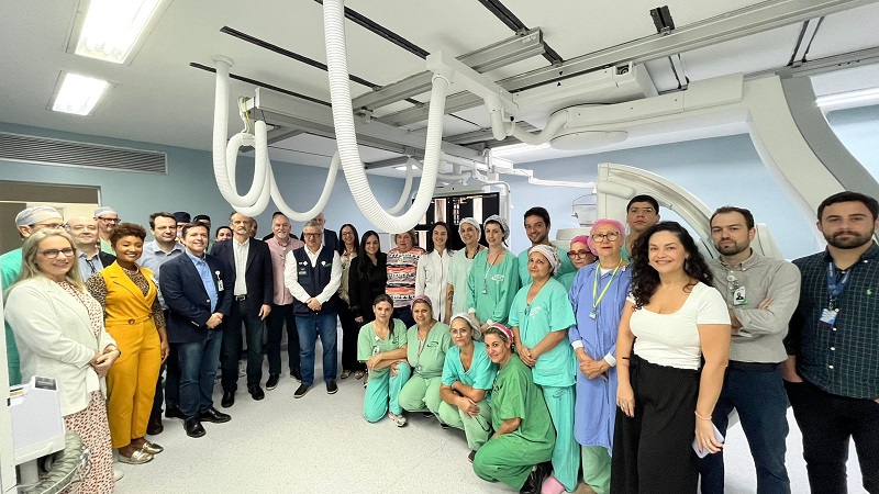 Nesta quarta-feira, 7 de maio, ocorreu, no segundo andar do Hospital Conceição, a entrega do upgrade do Angiógrafo da Sala 1 do Serviço de Hemodinâmica. Com a conclusão do upgrade e a instalação de configurações de ponta, consideradas entre as mais avançadas do estado, a expectativa é de que a produção cresça. Nessa linha, o serviço está preparado para ampliar a oferta de exames e procedimentos aos usuários do SUS, incluindo cateterismos cardíacos, angioplastias coronárias, cerebrais e periféricas, embolizações de sangramentos e malformações arteriovenosas, correções de aneurismas de aorta (abdominal e torácica), nefrostomias, colangiopancreatografia retrógrada endoscópica, entre outros.