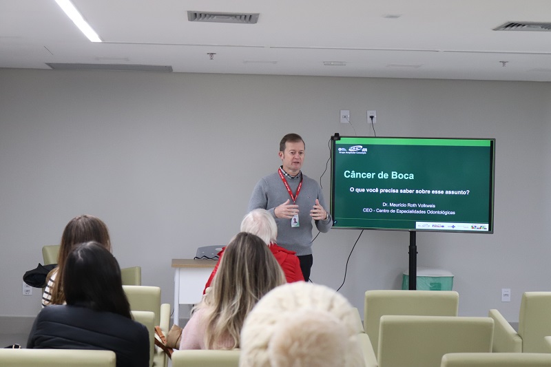 Na manhã desta sexta-feira, 30 de maio, ocorreu no Espaço de Convivência do Centro de Oncologia e Hematologia do Grupo Hospitalar Conceição (COH/GHC), uma atividade alusiva ao Maio Vermelho, que abordou a importância da prevenção e do diagnóstico precoce do câncer de boca. O evento foi organizado pela coordenação do serviço de Odontologia do GHC. Na ocasião, os odontólogos da instituição Maurício Roth Volkweis e Roberta Garcia palestraram sobre o câncer de boca.