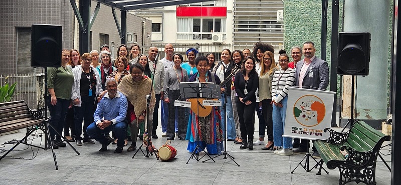 No ato de abertura, a diretora de Inovação, Gestão do Trabalho e Educação do Grupo Hospitalar Conceição, Quelen Tanize Alves da Silva, destacou a importância de cada trabalhador no processo de cuidado. “As atividades no Fêmina são precedidas com música, o que é muito positivo, pois o lúdico e a arte precisam estar presentes nos espaços de cuidado”. Além da diretora, a gerente da Gestão de Pessoas do GHC, Juliana Spall, o gerente de Administração do Hospital Fêmina, Cláudio Silva, e a gerente de Internação do Hospital Fêmina, Niva Martinez, marcaram presença. O evento também contou com as cantoras Irmãs Vidal e Sônia Bispo.