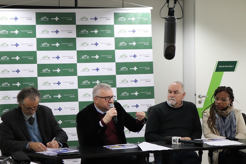 “Queremos o melhor tempo, mais adequado e oportuno, para que a saúde do paciente não se agrave”, afirmou o diretor-presidente do GHC, Gilberto Barichello, ao explicar as medidas. Também estavam presentes o diretor de Atenção à Saúde, Luís Antônio Benvegnú, a diretora de Inovação, Gestão do Trabalho e Educação, Quelen Tanize Alves da Silva, e o diretor Administrativo e Financeiro, João Motta.