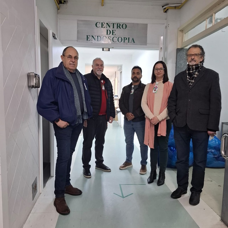 O diretor de Atenção à Saúde do Grupo Hospitalar Conceição (GHC), Luís Antônio Benvegnú, e o diretor Administrativo e Financeiro, João Motta, visitaram na segunda-feira, 30 de junho, a área reformada da Endoscopia do Hospital Nossa Senhora da Conceição (HNSC). A visita foi acompanhada pela gerente de Interunidades de Serviços Auxiliares de Diagnóstico e Tratamento (SADT), Carolina Gasperin, pelo gerente de Engenharia e Manutenção, Elifas Simas, e pelo assistente da Gerência de Interunidades de SADT, Eduardo Cardoso Vargas.