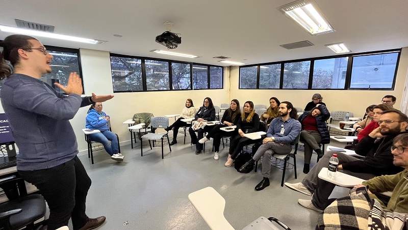 As palestras foram conduzidas pelo psiquiatra da infância e adolescência da GAPS - Matriciamento dos Postos, Luis Eduardo Silva Ormonde, e pelo aluno de Direito da Universidade Federal do Rio Grande do Sul (UFRGS) Henrique Teixeira Freitas, que fez sua apresentação em Libras e contou com intérpretes de Libras/Português. Ele é o único aluno surdo sinalizante da sua graduação na Universidade.