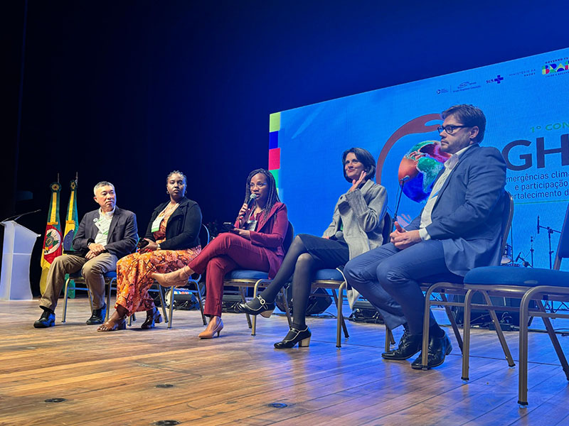 Na tarde da quinta-feira, o 1º Congresso GHC promoveu a mesa “Emergências climáticas e resiliência dos sistemas de saúde”. O encontro discutiu as necessidades diante da crise climática, os cuidados integrados, a participação social e os desafios para o fortalecimento do Sistema Único de Saúde (SUS), que se retoma ao refletir os acontecimentos vivenciados no Rio Grande do Sul durante as cheias de 2024.