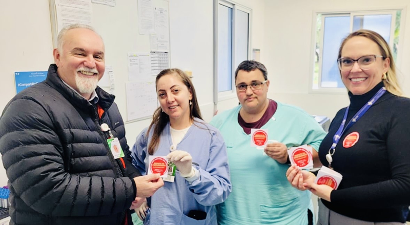 Nesta segunda-feira, 8 de setembro, o diretor de Atenção à Saúde do Grupo Hospitalar Conceição, Luís Antônio Benvegnú, esteve na Unidade de Pronto Atendimento Moacyr Scliar para uma ação de conscientização contra a violência nas instituições de saúde. A atividade contou com a distribuição de adesivos com mensagem educativa, reforçando o compromisso com o respeito, a empatia e a valorização dos profissionais de saúde. A responsável técnica de enfermagem Carolina Zeni acompanhou a ação ao lado da equipe, demonstrando engajamento com a causa dos trabalhadores. A iniciativa foi idealizada pela CIPAA da UPA, como parte das estratégias para promover um ambiente mais seguro e acolhedor para trabalhadores e usuários.