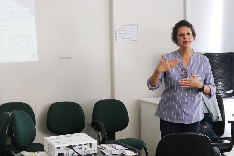 Durante o momento da palestra, profissionais compartilharam experiências sobre a atuação da equipe do Fêmina em casos de perda gestacional. A psicóloga orienta a sensibilidade dos profissionais com as famílias em todas as etapas, desde a comunicação do óbito até o acompanhamento psicológico pós-alta. Oferecendo orientações sobre como lidar com o enxoval e o quarto do bebê, a possibilidade de realizar despedidas simbólicas, registrar o nome do filho e participar da despedida. “A perda não foi uma escolha dos pais, não há pressa. Cada família tem seu tempo para elaborar esse processo”, destacou a palestrante.