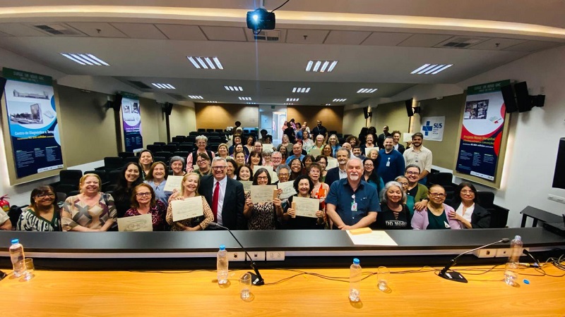 O Grupo Hospitalar Conceição (GHC) realizou, nesta quinta-feira (6), homenagem pela trajetória profissional na instituição a 56 trabalhadores que aderiram ao Programa de Desligamento Voluntário (PDV). A cerimônia contou com a presença de toda a Diretoria Executiva do grupo e foi um momento de emoção e de rememorar histórias. Muitos dos trabalhadores que agora se desligam entraram muito jovens no GHC e desenvolveram nele toda sua trajetória profissional.