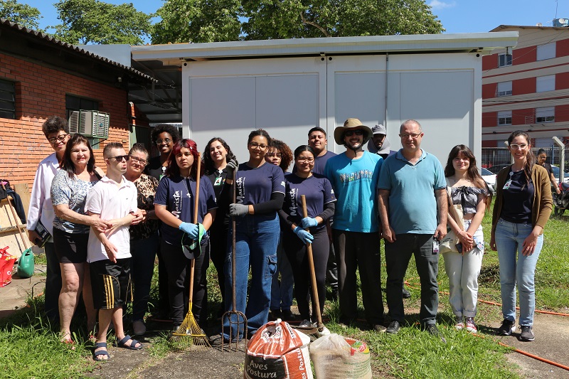 Com o objetivo de ampliar o acesso a alimentos saudáveis e combater a insegurança alimentar, o programa Jovem Aprendiz do Grupo Hospitalar Conceição (GHC) e da Rede Marista iniciou nessa quinta-feira, 6 de novembro, a implantação de uma horta comunitária no pátio da Unidade de Saúde Parque dos Maias. O primeiro plantio contou com mudas de alface, couve, capim-cidreira, cidró, hortelã e outras ervas aromáticas.