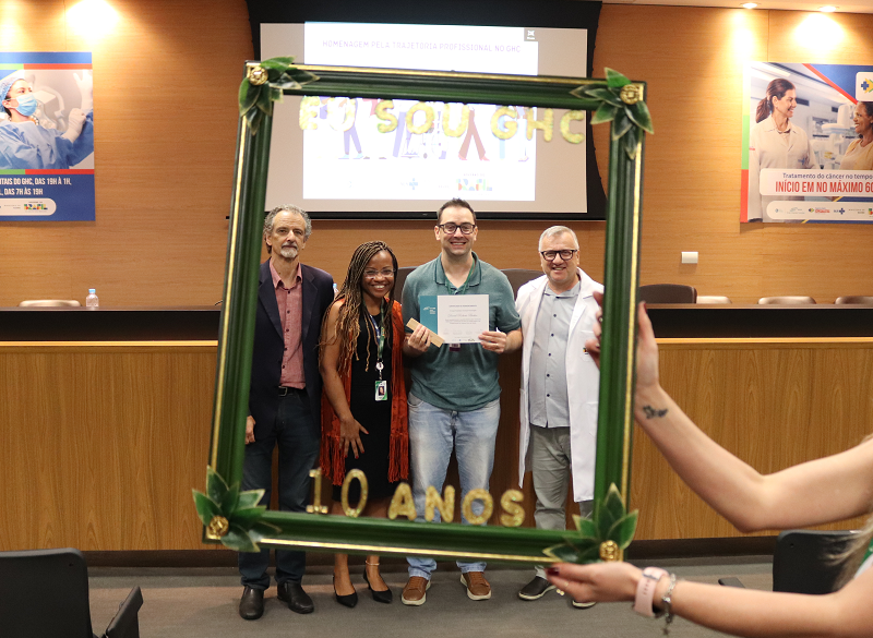 Trabalhadores do Grupo Hospitalar Conceição receberam homenagem, no último dia 19 de dezembro, em reconhecimento ao tempo de serviço dedicado à instituição. O evento, realizado no Auditório Jahyr Boeira de Almeida, foi destinado aos colaboradores que completaram 10 anos de trabalho.