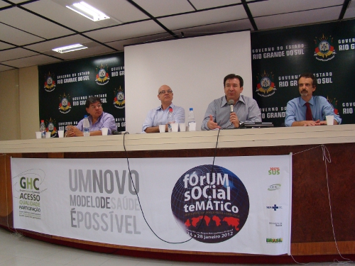 O superintendente do Grupo Hospitalar Conceição (GHC), Carlos Eduardo Nery Paes, participou da oficina “Democracia, Participação e Controle Social na Gestão Pública”, evento realizado na manhã desta sexta-feira, 27, no auditório do Centro Administrativo Fernando Ferrari Filho. A atividade, que integra a programação do Fórum Social Temático, contou também com a presença do secretário estadual do Planejamento, João Motta, e do sociólogo da Universidade Federal do Rio Grande do Sul (UFRGS) José Vicente Tavares.