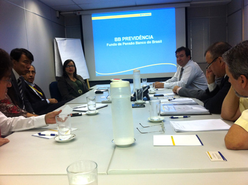 Os diretores do Grupo Hospitalar Conceição, Carlos Eduardo Nery Paes, Neio Lúcio Fraga Pereira e Gilberto Barichello, estiveram, no dia 8 de março, em Brasília, na sede do BB Previdência, do Banco do Brasil, para tratar do Plano de Previdência Complementar para os trabalhadores do GHC. Eles se reuniram com o diretor-presidente do BB Previdência, Jânio Macedo, o superintendente Jorge Magalhães Divino, a gerente de Atuaria Mariana Cristina Macieira Souza, o diretor de Operação e Relacionamento Raimundo Cabral Júnior e a gerente de Relacionamento Letícia Victorio, além do gerente de Recursos Humanos do GHC, José Pedro da Luz, e do coordenador de Administração de Pessoal da GRH/GHC, Honório Marques dos Santos, para realizar ajustes necessários no projeto. A proposta final será levada para aprovação junto aos órgãos do governo para as providências legais.