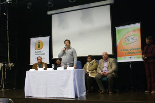 A saúde da população negra exige uma atenção diferenciada, como lembrou o superintendente do Grupo, Carlos Eduardo Nery Paes. Ele destacou o avanço da instituição no controle da anemia falciforme, que é mais prevalente na população negra, graças ao esforço da diretoria do GHC em conjunto com a CEPPIR, e enfatizou que, “de agora em diante, devemos emplacar o nosso trabalho nos órgãos públicos, para que resultem em ações de saúde”. A coordenadora do Centro de Resultados Participação Cidadã, Antelina Ott, afirmou que “a saúde da população negra deve ser olhada com o diferencial da etnia”. Também presente no evento, o presidente do Conselho Regional de Enfermagem (Coren/RS), Ricardo Rivero, parabenizou o GHC pela “corajosa iniciativa” e manifestou seu desejo de que outras instituições sigam o exemplo. Completaram a mesa uma das coordenadoras da CEPPIR Maria Geneci Silveira e o gerente de Recursos Humanos, José Pedro da Luz.