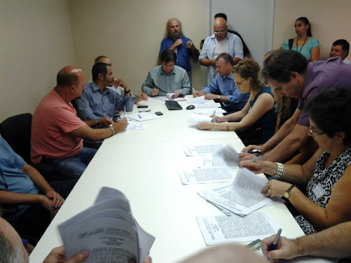 Foi assinado, na manhã desta quarta-feira, 9 de janeiro, o Acordo Coletivo de Trabalho abrangendo todos os trabalhadores ativos do Grupo Hospitalar Conceição. O ato oficializou as negociações realizadas no segundo semestre de 2012, junto ao Tribunal Regional do Trabalho, entre o GHC e os 12 sindicatos que representam os trabalhadores da instituição. Participaram da assinatura os diretores do GHC, Carlos Eduardo Nery Paes, Neio Lúcio Fraga Pereira e Gilberto Barichello, o gerente de Recursos Humanos, José Pedro da Luz, representantes dos sindicatos, entre eles o Sindisaúde, o dos técnicos e auxiliares em Radiologia e dos farmacêuticos, bem como da Associação dos Servidos do GHC (Aserghc).