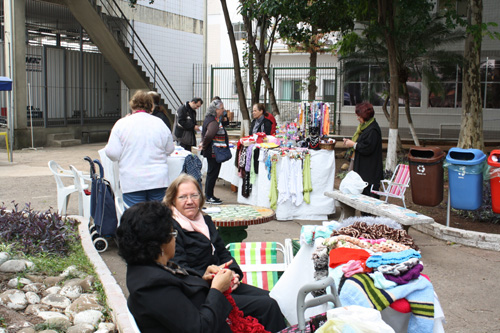 Nesta quinta-feira, 6 de junho, o Chalé da Cultura, localizado no pátio interno do Hospital Conceição, realizou uma feira de artesanato com a exposição de produtos feitos à mão, como crochê, costura, miçangas e pintura em tecido, além do aproveitamento de materiais reciclados. Os materiais foram produzidos por três grupos de artistas das comunidades das unidades de saúde do Grupo Hospitalar Conceição, além dos oficineiros do grupo de voluntariado do Chalé.