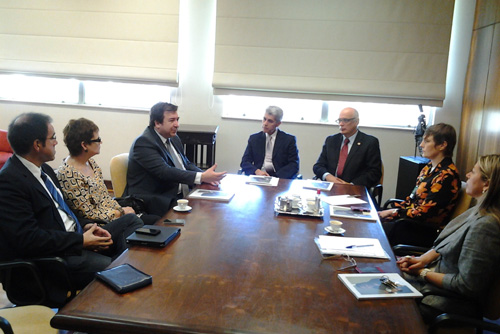 O superintendente do Grupo Hospitalar Conceição, Carlos Eduardo Nery Paes, o diretor técnico, Paulo Bobek, e a assessora da diretoria Carmem Oliveira participaram na manhã desta quarta-feira, 13 de novembro, de uma reunião com o reitor da UFRGS, Carlos Alexandre Netto, com o vice-reitor, Rui Vicente Oppermann, com a vice-pró-reitora de Graduação, Andréa Benites, e com professora Lúcia Kliemann, vice-diretora da Faculdade de Medicina da UFRGS. O encontro foi na reitoria da universidade e teve como objetivo apresentar o Curso de Medicina do GHC e estabelecer relações para que o Grupo Conceição alcance todos os pré-requisitos necessários para implantação dessa graduação.