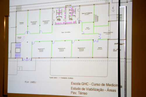 Foi apresentado na manhã desta quinta-feira, 5 de dezembro, no auditório do Hospital Cristo Redentor, o projeto da Curso de Medicina, que vem sendo desenvolvido pelos grupos de trabalho, coordenados pela assessora da diretoria Maria da Glória Sirena, para viabilização dessa graduação no Grupo Hospitalar Conceição. A apresentação, direcionada à diretoria do GHC, apontou, além do projeto, a metodologia e a grade curricular, a estrutura física e o Plano de Desenvolvimento Institucional (PDI). Em fase de elaboração, o projeto, quando concluído, será encaminhado ao Ministério da Educação para aprovação. O diretor-superintendente do GHC, Carlos Eduardo Nery Paes, participou da apresentação, bem como demais gerentes envolvidos.