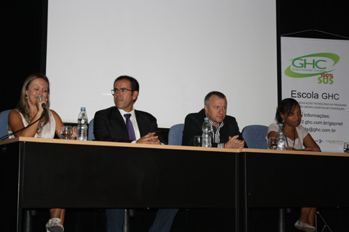 Nesta quinta-feira, 6 de março, a Escola GHC recebeu os novos alunos da Residência Integrada em Saúde (RIS). Fizeram parte da mesa de abertura o diretor técnico do GHC, Paulo Bobek, o diretor administrativo e financeiro do GHC, Gilberto Barichello, a gerente de Ensino e Pesquisa, Quelen Silva, e a coordenadora da RIS, Carla Molz.