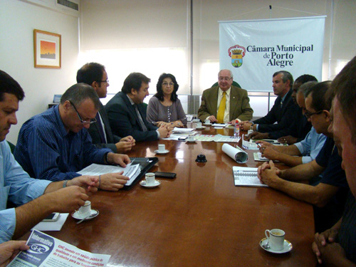 Os diretores do Grupo Hospitalar Conceição (GHC) participaram de uma reunião com vereadores de Porto Alegre, na quarta-feira, dia 12 de março, no Salão Nobre Dilamar Machado, da Câmara Municipal de Porto Alegre, e apresentaram alguns dados sobre os serviços, o atendimento prestado à população e a situação financeira da instituição. O convite para os diretores do GHC participarem da atividade na Câmara foi feito pelo vereador Professor Garcia (PMDB) e contou com a presença de outros nove vereadores.