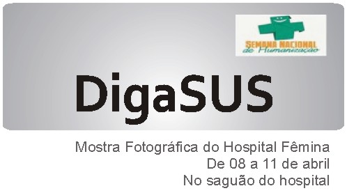 DigaSUS é uma mostra fotográfica promovida pelo Hospital Fêmina, unidade do Grupo Hospitalar Conceição (GHC), que está sendo construída com a participação dos trabalhadores da instituição e tem como objetivo provocar reflexões nas usuárias, familiares e profissionais de saúde que passam pelo saguão do hospital. A mostra iniciou ontem, terça-feira, dia 8 de abril, e se estende até sexta-feira, dia 11. A atividade integra a Semana Nacional de Humanização. As fotos foram colocadas em um espaço estratégico do saguão do hospital e podem observadas por quem passa pelo local.