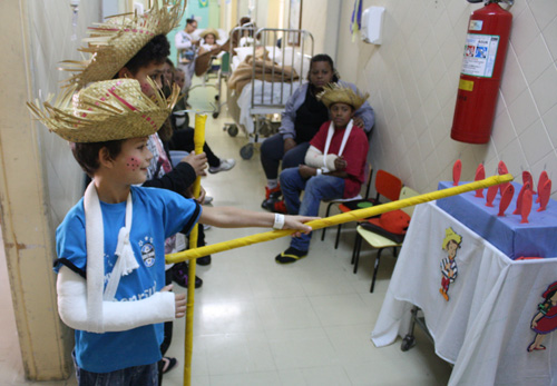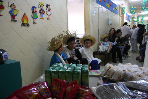 A tarde desta terça-feira, 24 de junho, foi diferente para as crianças internadas no Hospital Cristo Redentor. A Unidade de Pediatria foi toda enfeitada para comemorar a festa junina de São João. Os funcionários do serviço também disponibilizaram adereços e pinturas aos pequenos pacientes, que ficaram caracterizados como verdadeiros caipiras, alegrando a todos, especialmente os familiares. Na ocasião, também foram distribuídos doces típicos como pipocas, bolos e paçocas. Além disso, as crianças se divertiram com brincadeiras, entre elas a tradicional pescaria.