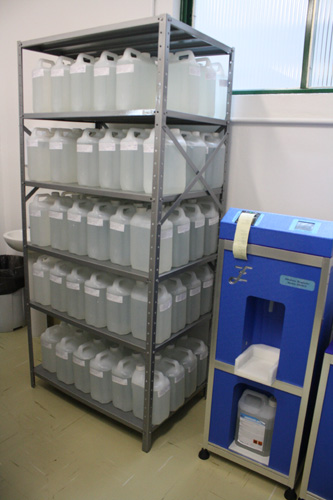 Foi inaugurada nessa quinta-feira, 24 de julho, a Central de Diluição e Saneantes do Hospital Conceição. Em função de uma determinação da Agência Nacional de Vigilância Sanitária (Anvisa), a central deixa de ser responsabilidade da Gerência de Administração do hospital e passa a integrar a Gerência de Serviço de Auxílio Diagnóstico e Tratamento (SADT). De acordo com a responsável técnica pelo processo, a farmacêutica Luciana Gomes, a mudança de gerência vai aumentar a demanda, pois atenderá às necessidades dos hospitais Conceição e Criança Conceição. Serão produzidos diariamente 300 galões de cinco litros de detergente neutro – utilizado nas áreas administrativas e com pouca circulação de pacientes – e 350 galões de cinco litros de Aniosurf, detergente desinfetante destinado para limpeza de áreas críticas hospitalares. As novas máquinas diluidoras recém instaladas permitem maior qualidade na produção e segurança, pois emitem um comprovante de data e horário em que cada galão foi produzido.
