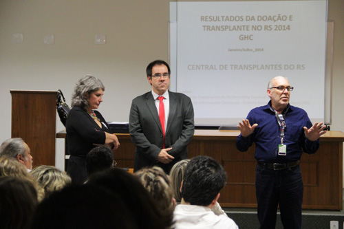 Em alusão ao mesmo tema, ontem, 17 de setembro, o HCR recebeu a coordenadora da Central de Transplantes do Rio Grande do Sul, Rosane Nothen, para uma conversa no auditório com médicos e coordenadores intensivistas sobre o panorama geral do estado em captação e doação de órgãos. O HCR é o principal captador de órgãos do Rio Grande do Sul, estando acima da média do estado. Desde 2009, o GHC é referência em captação de órgãos e tecidos para transplantes e tem um quorum de 82% de funcionários declarados doadores. O diretor técnico do GHC, Paulo Bobek, e o gerente de Internação do HCR, Walter Broock, estiveram presentes neste evento.