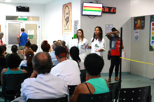 A Unidade de Pronto Atendimento (UPA) Moacyr Scliar promoveu nesta sexta-feira, 6 de março, a distribuição de informativos e uma palestra sobre os direitos das mulheres. A coordenadora de Direitos Humanos do Grupo Hospitalar Conceição (GHC), Carla Baptista, e a membro da Ceppir/GHC Renata Rodrigues Lopes entregaram a cartilha “Lei Maria da Penha” para os usuários e funcionários da unidade. Já as assistentes sociais Carine Fernandes e Daiane Borges realizaram uma palestra sobre a violência contra a mulher na sala da recepção da UPA Moacyr Scliar. O evento contou com a participação do gerente da UPA, João Albino Potrich, do coordenador de Administração da UPA, Alvarim de Souza Severo, e da assessora da Gerência Lia Dani.
