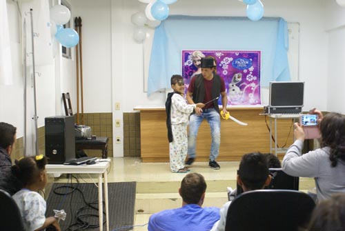 A festa contou com a presença do Mágico Roger, deixando a garotada com olhares incrédulos ao fazer lenços sumirem e varinhas mágicas aparecerem. As meninas Rafaela Glavam, Andressa Moura e Ana Laura Nazari, da Igreja Brasa Zona Norte, dançaram e animaram as crianças e pessoas presentes com suas coreografias. Voluntários do Grupo Viver Melhor também estiveram na atividade. Fantasiadas de “Minnies”, entoaram canções infantis clássicas para o público.