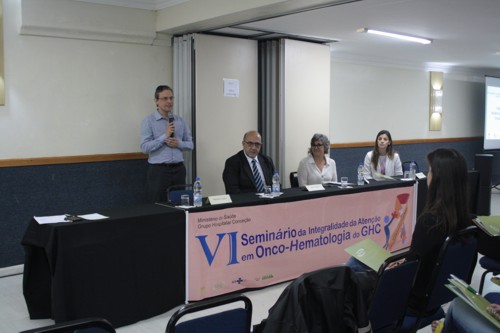 Também participaram da mesa de abertura a representante da Gerência de Ensino e Pesquisa do GHC, Edelves Vieira Rodrigues e Cíntia Raquel Heldt de Carvalho, enfermeira e precptora da residência em onco-hematologia do HSNC.