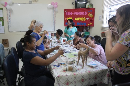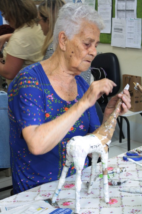 As confecções da oficina utilizam basicamente jornais, garrafas pet, papelão e demais materiais recicláveis, dependendo do que se está produzindo. Desde o início do Grupo, já foram confeccionados diversos objetos e itens de decoração. Ainda segundo as coordenadoras, a dinâmica da atividade é aberta, ou seja, qualquer participante pode ensinar técnicas de artesanato e compartilhar os conhecimentos com os colegas de oficina. Aos 76 anos, a aposentada Dalzíria dos Santos, que frequenta o Mil Artes há 2 meses, conta que fazer parte do projeto mudou a sua vida. “Para mim este grupo é tudo. Como sou sozinha, aqui é uma distração. Estamos sempre produzindo coisas novas e aprendendo”, destaca a aluna.