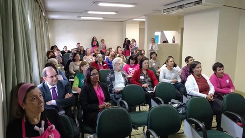Buscando a valorização e a integração de mulheres com câncer, o grupo de voluntárias do Hospital Fêmina promoveu nesta terça-feira, 3 de novembro, a 20ª edição do Programa Conviver, voltado às pacientes com a doença. As atividades, realizadas no auditório da instituição, tiveram início pela manhã, com a presença dos gerentes do HF, Paulo Bobek e Marinéia Rocha. Após abertura, foi proferida a palestra “Sou mulher, me respeita”, com a advogada e voluntária Cristiane Freitas de Souza. Na sequência, o enfermeiro Paulo Nogueira, que atua em posto de saúde do município de Canoas, tratou sobre “Posto de saúde versus paciente”.
