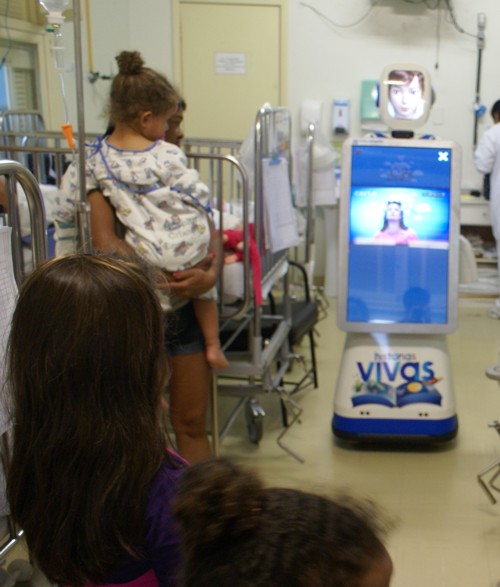 O Hospital da Criança (HCC) recebeu uma visita diferente na manhã desta terça-feira, 10 de novembro: um robô que conta histórias. Logo na entrada, olhares curiosos e desconfiados o receberam. Crianças pequenas e seus pais cochichavam na recepção. O robô, completamente interativo e automatizado, faz parte do projeto “Histórias Vivas” da 61º Feira do Livro de Porto Alegre, apoiada pela Caixa Econômica Federal.