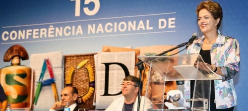“Quatro anos atrás, entre as diretrizes aprovadas na 14ª Conferência, estava a necessidade de fortalecer a atenção básica. Nós escutamos essa reivindicação justa, que era garantir a base e a estabilidade do SUS. Avançamos muito, construímos uma rede bem mais estruturada. Construímos novos postos de saúde, melhoramos e reformamos os existentes, fortalecemos o SAMU e criamos as farmácias populares. Mas eu quero dizer para vocês que a maior vitória da atenção básica no nosso País foi o programa Mais Médicos. Eu me orgulho muito do Mais Médicos”, disse Dilma.