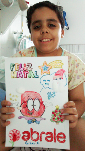O paciente da Onco-Hematologia do Hospital da Criança Conceição Lukas Almada Albuquerque, 11 anos, foi o vencedor da região Sul, do 2° Concurso de Desenho da Associação Brasileira de Linfoma e Leucemia (Abrale). Nessa terça-feira, 15 de dezembro, a representante da Abrale do Rio Grande do Sul Juliana Schwanke Martini entregou o presente da associação, que premiou Lukas pela criatividade do desenho. Vários pacientes do serviço participaram do concurso.