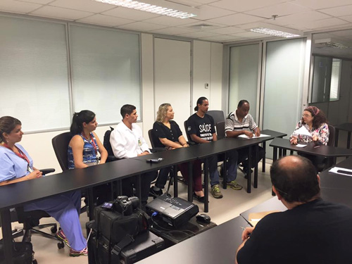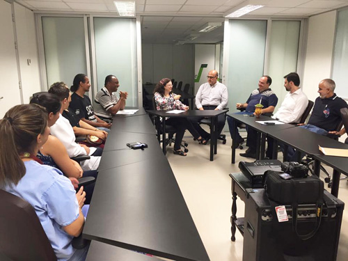 Estiveram presentes a diretora-superintendente do GHC, Sandra Fagundes, o diretor técnico José Fossari, o gerente de Recursos Humanos Diogo Santos, e representantes da diretoria do Sindisaúde, da Aserghc e da comissão de trabalhadores temporários.