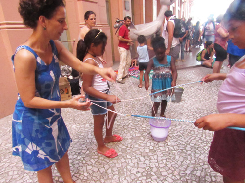 A presença do GHC no Fórum, não parou por aí. Em um segundo momento, o Grupo de Pesquisa Bolhas de Sabão, da Escola GHC, realizou uma atividade lúdica que envolveu todos que estivessem circulando pela Casa de Cultura Mário Quintana. O grupo, composto por Daniela Dallegrave, Maria Marta Orofino, Diego Monroe Kurtz, Elizandro Rodrigues, Ana Celina de Souza e Renata Pekelman, se reuniu do lado de fora da Casa, disponibilizando folhas de papel, canetas e material para o desenvolvimento de bolhas de sabão.