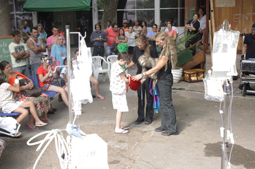 Ao final do show, as crianças entregaram aos artistas bonecos de pano confeccionados pelas voluntárias da Recreação do HCC. A ONG Viver de Rir, o gerente de Internação do HCC, Luiz Braun Filho, o gerente de Administração do HCC, Aldacir Oliboni, o diretor técnico do Grupo Hospitalar Conceição, José Fossari, e a diretora-superintendente do GHC, Sandra Fagundes, também prestigiaram o evento.
