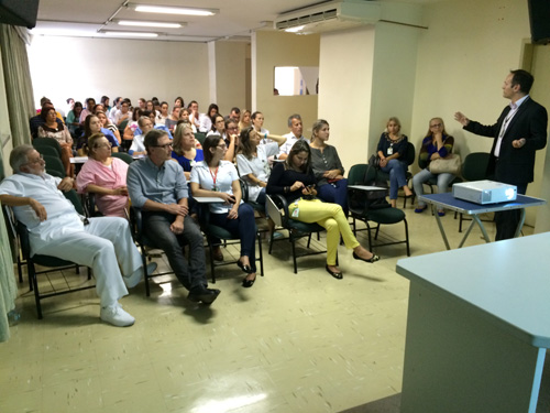A palestra, que reuniu gestores, médicos, enfermeiros, técnicos de enfermagem, auxiliares administrativos e residentes, faz parte do Programa de Integração da Residência Médica e das comemorações do Mês da Mulher no Hospital Fêmina.