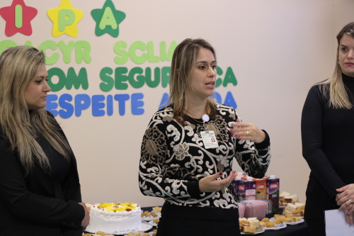 Presentes no evento, a gerente da UPA Moacyr Scliar, Fernanda Zanoto Kraemer, e o presidente da Cipa da unidade, Osório Flores Coronel, saudaram os colegas e a diretoria, apontando que momentos de confraternização e agrado aliviam o stress e valorizam os trabalhadores.