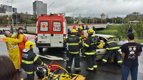 Estabelecer um plano de ações de atendimento às vítimas de um incidente de grandes proporções foi o objetivo da simulação de desastre realizado na tarde desse domingo, 4 de setembro, em Porto Alegre. O exercício contou com o apoio do Sindicato dos Hospitais e Clínicas de Porto Alegre (Sindihospa) e ocorreu na Av. Ipiranga, em frente à Federação Gaúcha de Futebol.