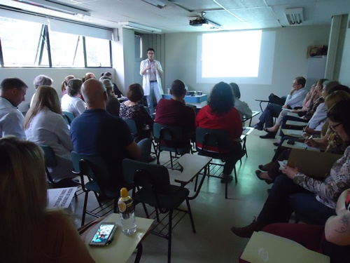 O encontro foi dividido em duas etapas, sendo que, na primeira, o convidado para abordar o tema “O que é demência?”, foi o médico neurologista do HNSC Raphael Castilhos. Raphael Castilhos realizou uma breve explicação sobre o que é demência: “Quando se fala em demência, se liga ao Alzheimer, mas existem outras demências”, explicou. Ele também ressaltou a importância da realização do diagnóstico correto: “É fundamental diferenciar demência de depressão, porque a depressão é possivelmente reversível”, disse. Castilhos ainda relatou que um dos principais sintomas do início da doença de Alzheimer é a dificuldade de absorver novas informações.